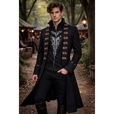 Gótico Medieval Renacimiento Abrigo Disfraz de lujo Vampiros Disfraz Hombre Fantasía Víspera de Todos los Santos Carnaval Rendimiento LARP Feria Ren Adulto Chaqueta