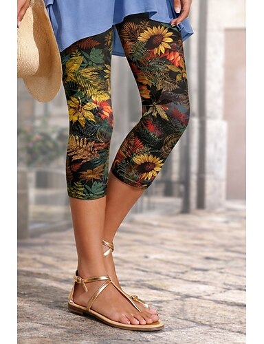Mujer Polainas Vacaciones Moda Ropa de calle Capris Alta cintura Floral Graphic Comodidad Suave Cómodo Elástico Diario Exterior Vacaciones Azul Piscina Verde Trébol Caqui Verano Primavera Otoño