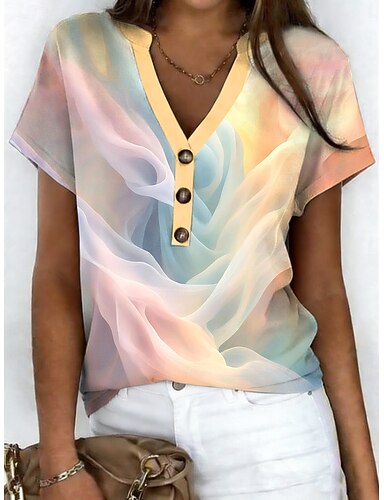 Mujer Camiseta Estampado Ombre Graphic Vintage Elegante Clásico Manga Corta Escote en Pico Cuello con muescas. Tops regulares Diario Noche Fin de semana Azul Piscina Morado Naranja Verde Trébol