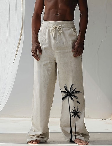 Hombre Árbol de coco Plantas tropicales Pantalones Pantalones anchos Pantalones casuales Media cintura Hawaiano Vacaciones Festivos Ropa de playa Correa Cintura elástica Perneras anchas Verano