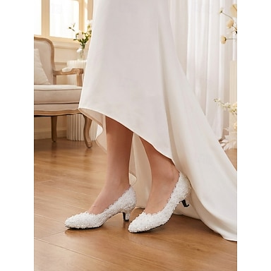 Zapatos de tacón bajo con cuentas de marfil para mujer, elegantes zapatos de novia para bodas en la ciudad.