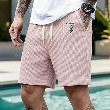 Hombre Fe impresión de letras Pantalones cortos de gofres Pantalones cortos casuales Pantalones cortos texturizados Media cintura Moda informal Diario Vacaciones Cintura elástica con cordón