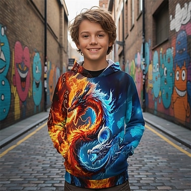Chico 3D Graphic Sudadera Manga Larga Primavera Otoño Moda Ropa de calle Niños 4-12 años Con Capucha Exterior Casual Diario Ajuste regular