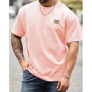Hombre Camiseta Tee Camisa manga corta Camiseta superior Manga Corta Cuello Barco Verano Primavera Plano Moda Design Básico Jacquard Vacaciones Calle Noche Negro Blanco Rosa Camiseta superior para