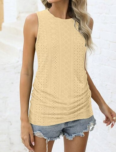 Mujer Camiseta sin mangas Camisa sin mangas Camiseta superior Ojal Color sólido Moda Clásico Casual Sin Mangas Cuello Barco Tops regulares Diario Noche Fin de semana Negro Blanco Amarillo Rosa Rojo