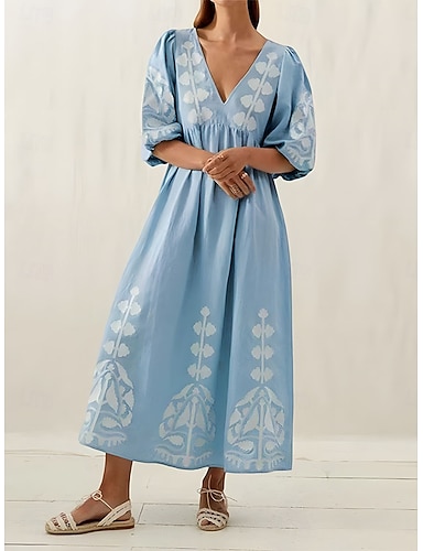 Mujer Vestido Midi Vestido informal Elegante Moda Moderno Exterior Playa Vacaciones Ajuste regular Graphic Media Manga Escote en Pico Azul Piscina Verano Primavera