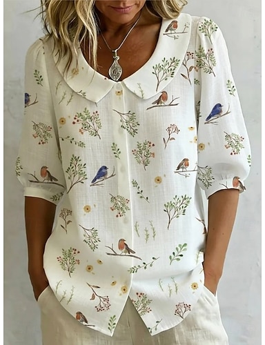 Mujer Camisa Floral Graphic Vintage Elegante Collar de Peter Pan Tops largos Diario Festivos Noche Azul Piscina Blanco Amarillo Verano Primavera