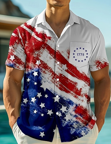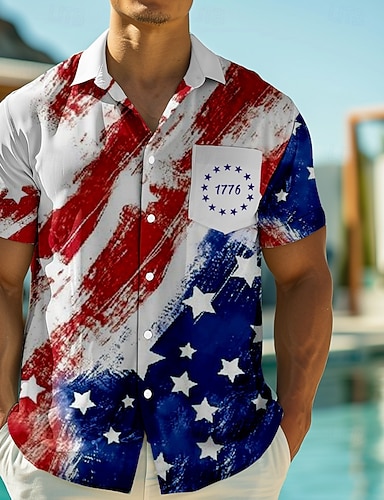 Camiseta patriótica de bandera de EE. UU. para hombres en el Día de la Independencia camisa de verano camisa de botones de manga corta moda casual vacaciones de verano primavera de cuello vuelto
