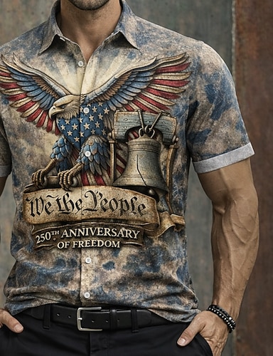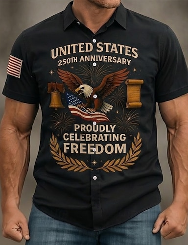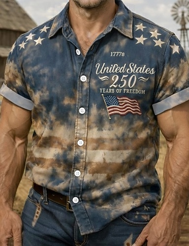 Día de la Independencia Hombre Bandera estadounidense de los Estados Unidos 4 de julio, 250 aniversario de Estados Unidos Cruz Camisa Camisa de verano Abotonar la camisa Manga Corta Moda informal