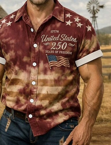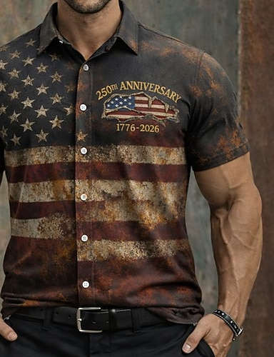 Hombre Bandera estadounidense de los Estados Unidos 4 de julio, 250 aniversario de Estados Unidos Tío Sam Camisa Camisa casual Abotonar la camisa Manga Corta Moda informal Vacaciones Festivos Verano