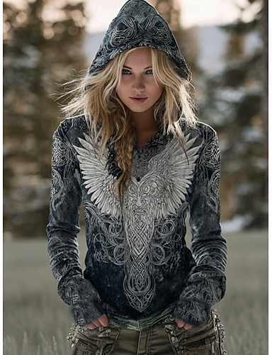 Mujer Sudadera con capucha Pullover Graphic Geométrico Casual Manga Larga Con Capucha Tops regulares Casual Uso Diario Deportes Negro Primavera Otoño