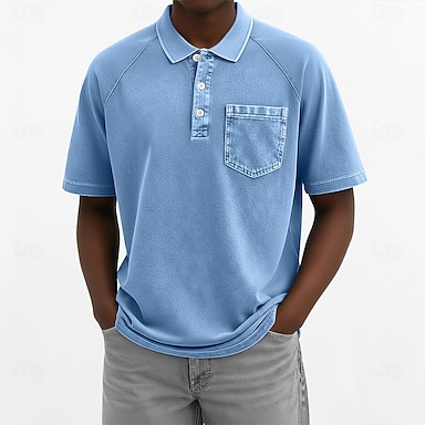 Hombre Camisetas polo Camisa 100% algodón con lavado ácido Casual Negocio Cuello Vuelto Manga Corta Moda Básico Color sólido Bolsillo Botones Verano Primavera Azul Piscina De color verde oscuro
