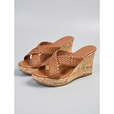 Sandalias de cuña tejidas marrones para mujer: cómodas alpargatas con plataforma, ideales para vacaciones en la playa o escapadas a la isla. &estilo bohemio veraniego