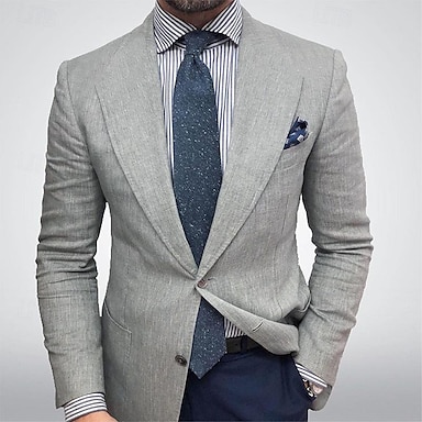 Hombre Graduación chaqueta Negocio Fiesta de Cóctel Fiesta de Boda Moda Casual Primavera & Otoño Poliéster Color sólido Bolsillo Botones Cómodo Botonadura Simple Chaqueta de sport Gris