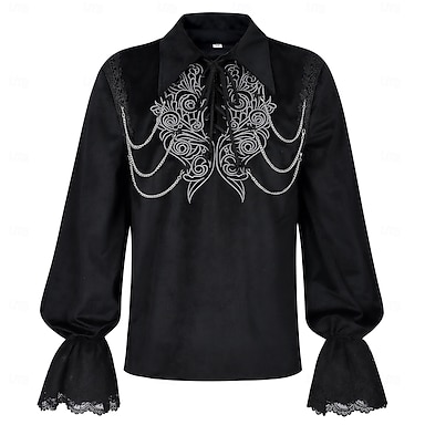 Punk y gótico Medieval Renacimiento Camisas Larga Caballero Color sólido Disfraz Hombre Real Mascarada Fiesta Rendimiento Mascarada Adultos Camisas