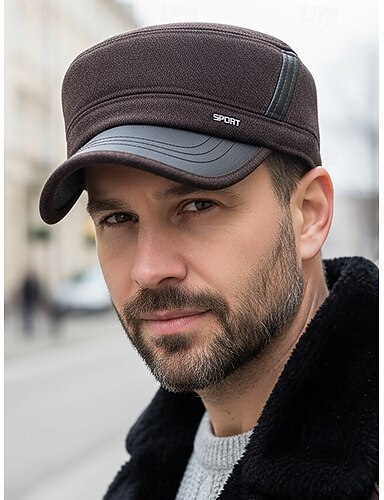 Gorro de invierno para hombre, de poliéster, con orejeras plegables, elegante y cálido, ideal para climas fríos al aire libre.
