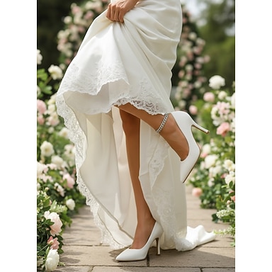 Zapatos de boda blancos de tacón alto y punta puntiaguda para mujer: elegantes zapatos de novia para bodas en el jardín.