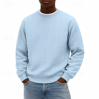 Hombre Jacquard Sudadera Pull-over Albaricoque Negro Naranja Gris Azul claro Cuello Barco Plano Con Texturas Deporte Casual Diario Ropa de calle Fresco Ropa deportiva Todas las Temporadas Ropa