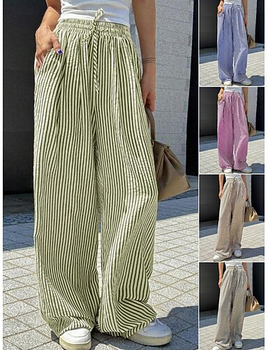 Mujer Perneras anchas Chinos Corte Recto Vacaciones Moda Ropa de calle Longitud total Alta cintura Raya Bolsillo Cintura elástica Estampado Confortable Comodidad Suave Elástico Diario Exterior Calle