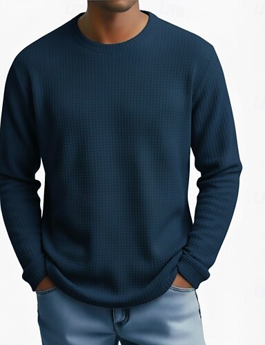 Hombre Camisa de gofres Camiseta Camiseta superior Camisa de manga larga Manga Larga Cuello Barco Otoño Primavera & Otoño Plano Con Texturas Moda Design Básico Puro Vacaciones Calle Casual Negro Azul