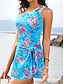 Tankini de mujer de 2 piezas traje de baño de boho con piernas cortas sin espalda ropa de playa para vacaciones gráfico con cuello en U sin mangas