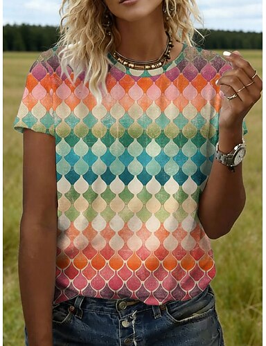 Mujer Camiseta Camiseta superior Estampado Graphic Geométrico Elegante Clásico Casual Manga Corta Cuello Barco Tops regulares Diario Deportes Noche Azul Piscina Rosa Verano Primavera