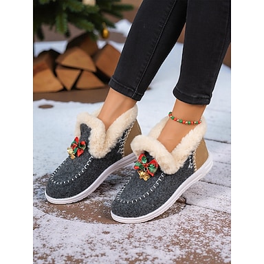 Zapatos de invierno para mujer, cálidos y afelpados, con un bonito detalle de lazo y campanilla, ideales para estar cómoda en casa, para el intercambio de regalos navideños y para usar durante el invierno.