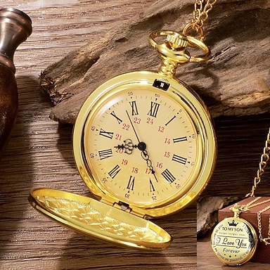 Reloj de bolsillo grabado para hijo, te amo, regalos de mamá, papá, regalo de cumpleaños, Navidad, relojes de bolsillo, cadenas