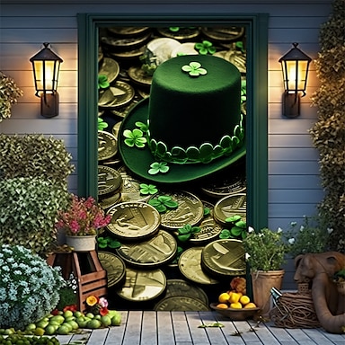 Cubiertas de puerta del día de San Patricio, tapiz de puerta, decoración de cortina de puerta, telón de fondo, pancarta de puerta para puerta de entrada, casa de campo, suministros de decoración para
