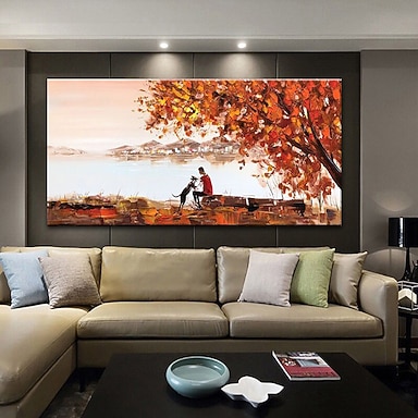 Pintura al óleo hecha a mano lienzo decoración de arte de pared cuchillo abstracto pintura paisaje árbol para decoración del hogar marco estirado pintura colgante