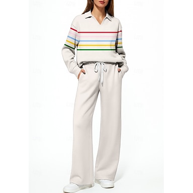 Mujer Sudadera Tracksuit Chándal de 2 piezas Correa Bolsillo A Rayas Conjunto de ropa deportiva Trajes de Yoga Otoño Invierno Blanco Vocación Al Aire Libre Viaje Ligero Moda Manga Larga Deporte Ropa