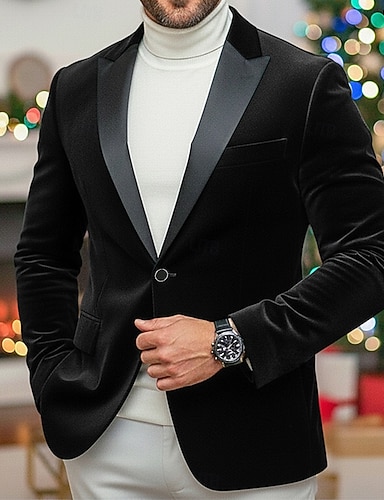 Hombre Chaqueta americana Americanas De Terciopelo Formal Navidad Fiesta Bolsillo Cálido Vintage Invierno Primavera & Otoño Terciopelo Color sólido Bolsillo Clásico Recto 1 botón Chaqueta de sport