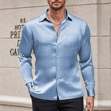 Hombre Camisa Camisa de raso Camisa para Vestido Camisa casual Abotonar la camisa camisa de baile Plano Formal Rendimiento Bleu Ciel Negro Azul Real Dorado Manga Larga Diseño Todas las Temporadas Ropa