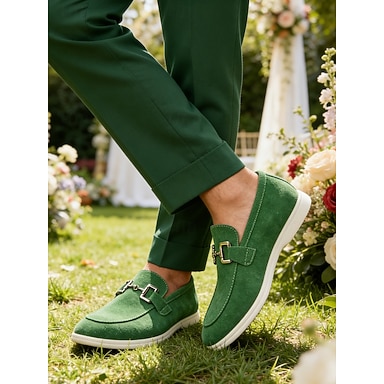 Zapatos verdes sin cordones para hombre con detalle de hebilla, elegantes zapatos casuales para hombres a la moda, perfectos para reuniones informales, fiestas, uso diario y bodas.