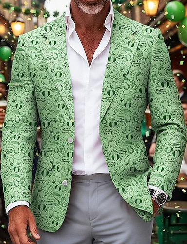 Hombre chaqueta Negocio Trabajo Fiesta Moda Día de San Patricio Otoño Invierno 100% Algodón Graphic Trébol Estampado Botonadura Simple Chaqueta de sport Verde Trébol