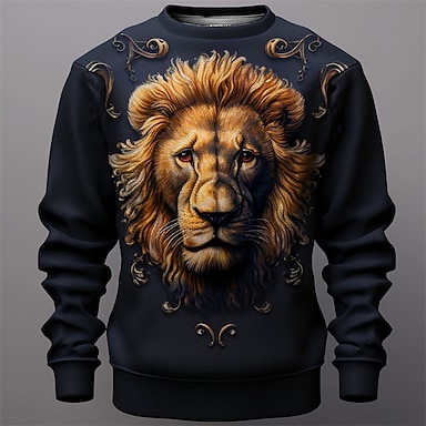 Hombre Graphic León Sudaderas Sudadera con capucha Manga Larga Camisa de entrenamiento Cuello Barco Moda Diario Casual Impresión 3D Ropa de calle Vacaciones Festivos Estampado Primavera & Otoño