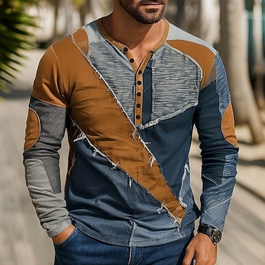 Hombre Año Nuevo Patrón de mosaico falso Henley Shirt Manga Larga Impresión 3d Casual Casual Diario Fiesta Invierno Primavera & Otoño Marrón Henley Camiseta Henley