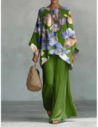 Mujer Conjuntos de pantalones Sin Mangas Escote en U Floral Graphic Vacaciones Diario Casual Diario Festivos Azul Piscina Morado Verde Trébol Verano Holgado