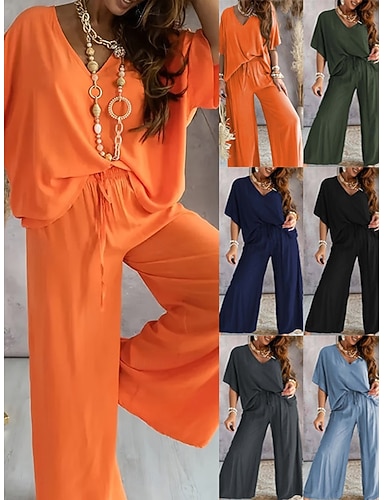Mujer Conjuntos de dos piezas Conjuntos de pantalones parte superior del bolero Manga Corta Escote en Pico Plano Moda Ropa de calle Casual Diario Exterior Negro Verde Ejército Azul Marino Verano