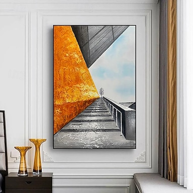 Pintura al óleo hecha a mano, lienzo, decoración de arte de la pared, arquitectura abstracta moderna para decoración del hogar, pintura enrollada sin marco y sin estirar