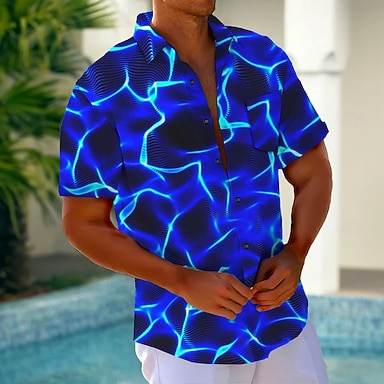 Hombre Relámpago Abstracto Resplandor de neón Camisa Camisa de verano Abotonar la camisa Manga Corta Moda informal Exterior Vacaciones Uso Diario Verano Primavera Cuello Vuelto Impresión 3D camisas