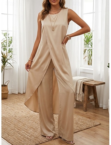 Mujer Conjuntos de lino y algodón Conjuntos de dos piezas Conjuntos de pantalones Sin Mangas Cuello Barco Plano Moda Ropa de calle Casual Diario Exterior Blanco Amarillo Caqui Verano Ajuste regular