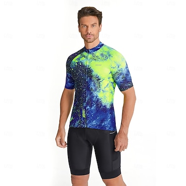 Hombre Maillot de Ciclismo Degradado Estampado Manga Corta Bicicleta Maillot Camiseta con 3 bolsillos traseros MTB Bicicleta Montaña Ciclismo Carretera Secado rápido Transpirabilidad Bandas
