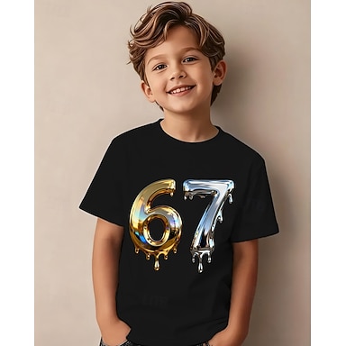 Algodón Niños Chico Negro Graphic Jerga divertida 67 Camiseta Blusa Cuello Barco Manga Corta Exterior Uso Diario Moda Ropa de calle Design Estampado Verano