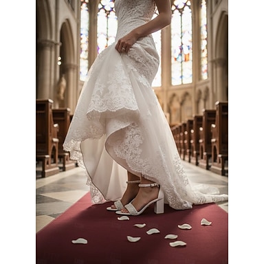 Zapatos de tacón con tira trasera y lazo de satén para mujer: elegantes zapatos de boda de punta puntiaguda para damas de honor en el jardín. &ceremonias al aire libre