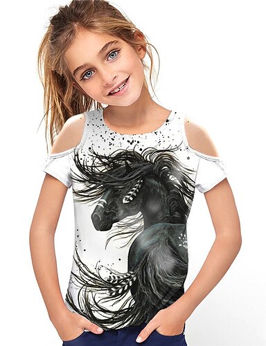 Chica 3D Animal Caballo Camiseta Manga Corta Impresión 3D Verano Primavera Activo Moda Estilo lindo Niños 3-12 años Exterior Diario Ajuste regular