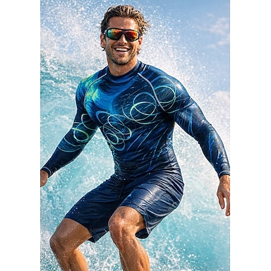 Hombre Camiseta Protección Solar Surf Camiseta de Baño Degradado Rayas UPF50+ Protección UV Secado rápido Manga Larga Bañadores Protección para Erupciones Surf Canoísmo Playa Verano
