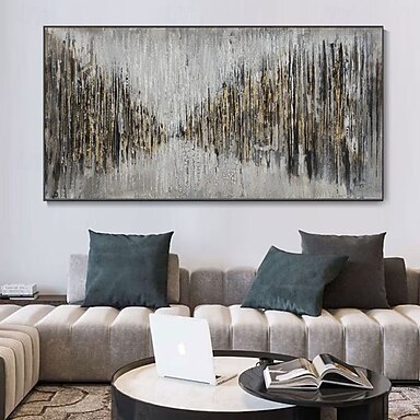 Pintura al óleo hecha a mano lienzo arte de la pared decoración moderna textura abstracta negro blanco y oro para sala de estar decoración del hogar pintura sin marco enrollada