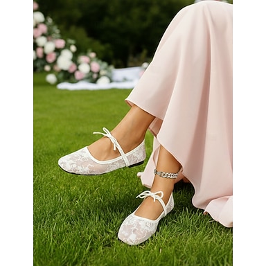 Elegantes bailarinas de encaje con punta cuadrada y lazo para mujer: perfectas para invitadas a bodas al aire libre y en el jardín, diseño cómodo y apto para césped.