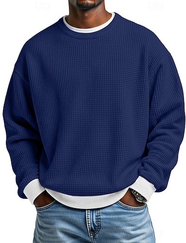 Hombre Camiseta con diseño de gofre Sudadera Camiseta superior Camisa de manga larga Manga Larga Cuello Barco Ronda Invierno Primavera & Otoño Plano Moda Design Básico Moda falso de dos piezas